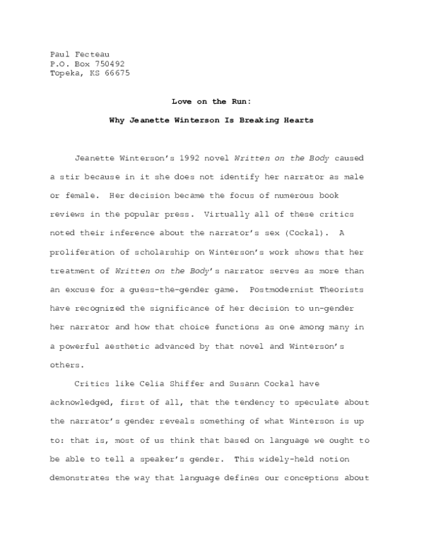 Pdf Love On The Run Why Jeanette Winterson Is Breaking Hearts Paul Fecteau Academia Edu